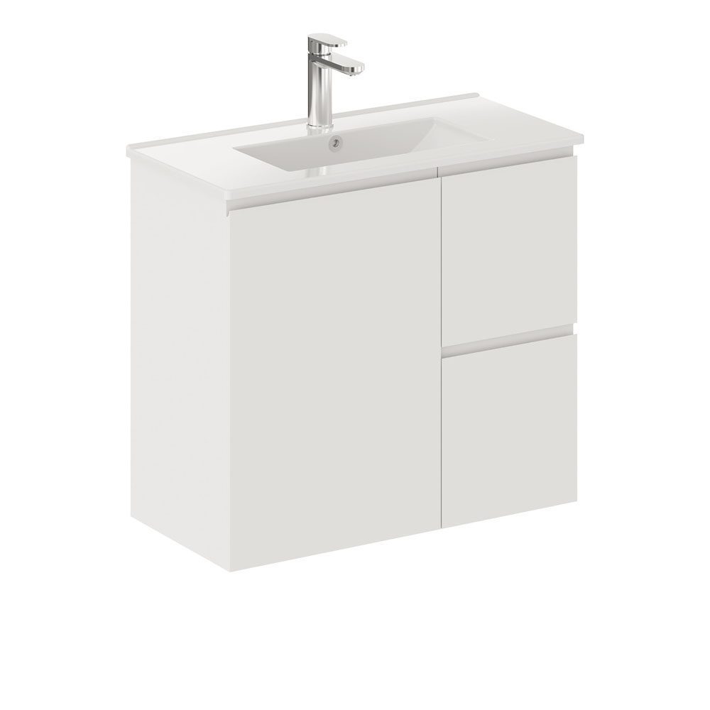 FIENZA 75DF SISKA SLIM WALL HUNG VANITY 750 LEFT/RIGHT HAND DRAWERS SATIN WHITE