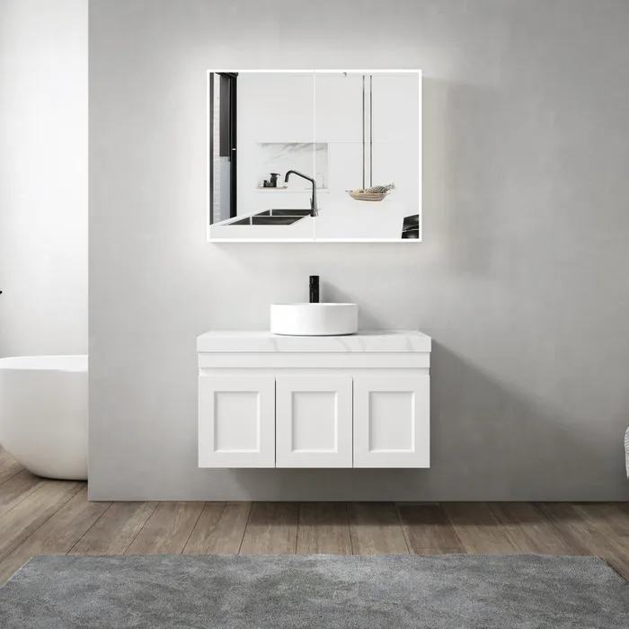 Moonlight led shaving cabinet 900*650*130 With Solid Surface stone Edge