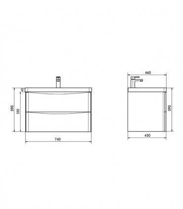 Inspired by the latest design and a 40mm high gloss white Polymarble top, our Lurus dark oak wall hung vanity 750mm with MDF construction will revamp your bathroom with a stunning designer look, complete with an arc-shape edge and seamless PVC filmed surface.