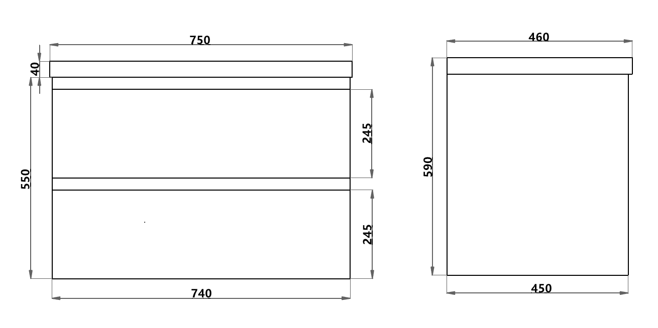 POSEIDON PW7546W POLY WHITE MDF WALL HUNG VANITY DOUBLE DRAWERS 750*550*460MM GLOSS WHITE